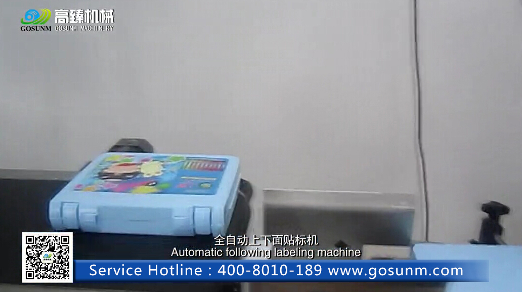 全自動上下面貼標機屬于平面貼標機系列,適用于規則性長方形、正方形物體的上下面貼標,可一次性貼上下面兩種標簽,如盒子上下面貼標;組合機型可單獨分開,轉換成兩臺通用型平面貼標機。下面我們用平常經常看到的彩筆文具盒來介紹該機器的操作過程吧。