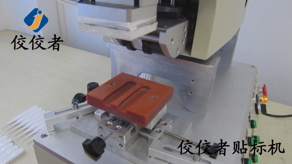 圖四的步驟是踩腳踏,此時(shí)貼標(biāo)過程已經(jīng)完成。看似只有一秒鐘的時(shí)間,在這個(gè)時(shí)間中機(jī)器進(jìn)行了一系列的工作。吸標(biāo)頭向下垂直運(yùn)動到指定位置,標(biāo)簽剝離機(jī)構(gòu)同時(shí)出標(biāo),當(dāng)標(biāo)簽出到1/2處時(shí),吸氣裝置啟動并吸住標(biāo)簽,待標(biāo)簽完全剝離,標(biāo)簽也完全被吸在貼標(biāo)頭上了。此時(shí)貼標(biāo)頭向下貼標(biāo)到指定位置,這里說的就是產(chǎn)品放置的位置了。至此,這臺貼標(biāo)簽機(jī)的貼標(biāo)過程就已經(jīng)完成了.(操作過程:放產(chǎn)品—>貼標(biāo)并覆標(biāo)(設(shè)備自動實(shí)現(xiàn))—>取出已貼標(biāo)產(chǎn)品)。如下 圖五、圖六: